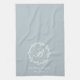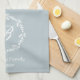 Küchenhandtuch mit personalisiertem Monogramm, umrahmt im Winter mit weißem botanischem Kranz.