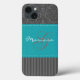 Stilvoll mit Monogramm, modernes, graues und türkisblaues Damastmuster mit Streifen Case-Mate Barely There™ iPad Air Gehäuse kann mit Ihrem Logo, Namen, Initialen, Monogramm oder anderen Texten angepasst werden. Wenn Sie Hilfe benötigen, senden Sie eine E-Mail an niteowlstudio@gmail.com.