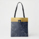 Mit Monogramm Tasche mit einem eleganten, blauen Marmor-Texturmuster-Druck und ein peronalisiertes Monogramm oben auf einem Imitat goldenes Texturband oben.