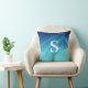 Monogramm blaues Satinwurfkissen. Einfach ein eigenes Monogramm hinzufügen.