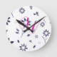 Monogram Blue Watercolor Floral Pattern Runde Wanduhr