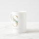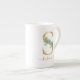 Diese moderne handbemalte botanische Aquarell Eukalyptusgrün auf Imitaten Goldbuchstabe S Knochen China Kaffee Tasse hat auch einen personalisierten Namen in einer passenden goldenen Hand geschrieben moderne Schrift unterhalb der ursprünglichen. Das ist ein schönes Geschenk für diese Frau in Ihrem Leben für jeden Anlass. Entworfen von Susan Coffey.