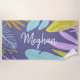Lavendeluntergrund mit tropischem Blattwerk in helltürkis, gelb und rosa mit individuellem Schriftart-Monogramm