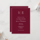 Diese schicke, minimalistische, bordeauxrote und goldene Hochzeitseinladung kann mit Ihren Monogramm-Initialen und den Informationen zum Hochzeitstag personalisiert werden. Mit Ihren Hochzeitswebsite-Details und Ihrem QR-Code auf der Rückseite. Entwickelt von Thisisnotme©
