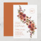Dieses Hochzeitsdesign zeichnet sich durch eine florale Wasserfarbenanordnung in Pfirsichtönen, verbrannten Orangen, Russet, Kupfer und lila schräg gegenüber der Einladung aus. Die Monogramm-Initialen der Braut und des Bräutigams erscheinen in einem Kreis in der oberen rechten Ecke. Personalisieren Sie den verbrannten orangefarbenen Text, der im unteren links erscheint, mit den Namen des Ehepaares in eleganter Handschrift und den Einzelheiten der Hochzeit in Sans Serif und Kursivschrift. Die Rückseite ist massiv gebrannt orange. Ideal für eine Hochzeit im Herbst.