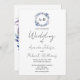 Eine schlichte monogramm Aquarell Blütenfarbe lila und blau Hochzeitseinladung. Einfach mit Ihren Daten personalisieren. Geometrische Kränze Foto Hochzeitseinladung, moderne boho Hochzeit Einladung editierbar, anpassbar, Kalligrafie handgeschriebenen Schriftart, einfach, elegant.