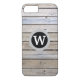 Das iPhone-Gehäuse aus Holz aus Holz ist monogramm. Sie werden diesen rustikalen und dennoch modernen trendigen Look Liebe finden! Weißer Monogramm-Brief in schwarz-grauem Kreis und ein Hintergrund aus Holzlatten.