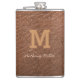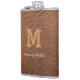 Monogram Chic Brown Leather Name Script Modern Flachmann