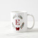 Monogramm Weihnachtskraut Tasse mit roten und grünen Winterbotanikalen und hübschem rotem Bogen.