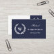 Klassisches weißes LorbeerkraenMonogramm auf dunkelblau, weißem individuelle Name und Beruf auf der Vorderseite, blaue Kontaktdaten auf der Rückseite. Sieht elegant, beeindruckend und teuer aus. Geeignet für viele Fachleute (Rechtsanwalt als Beispiel).