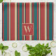 Dieses zeitlose Design ist ein klassisches Monogramm-Muster aus vertikalen Streifen in warmen, herbstlichen Farbtönen in Rot, aquamarin und Creme, hervorgehoben durch dünne schwarze Linien, und erinnert an Gefühle von Komfort, Wärme und Nostalgie. Es eignet sich hervorragend, um Ihrer Zuhause eine Touch saisonalen Stils hinzuzufügen.