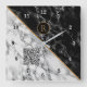 Monogram Clock Your QR Code - Black White Marble Quadratische Wanduhr