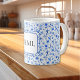 Monogram Cobalt Blue Flowers & Blätter Muster 11oz Kaffeetasse