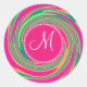 Monogram Coral Hot Pink Green Whirlpool Swirl Runder Aufkleber