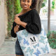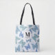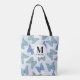Dieses Design verfügt über ein Monogramm, Aquarellblau Schmetterlingsbeutel, ein individuelles, botanisches, blaues Design, personalisiert mit Initial und Name, personalisierte, hübsche hellblaue Schmetterlinge