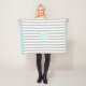 Monogram Fleece Blanket in cyan trim mit grauen und weißen Streifen.