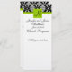 Hochzeitsprogramm mit Damaskusmuster und Monogramm. Layout Design von Elke Clarke©2010. lizenzierte Grafiken. Passen Sie Ihre Monogramm-Namen und Hochzeitsfarben an. Fügen Sie alle Ihre Hochzeitszeremonie und Kirchendienstinformationen auf der Kartenrückseite mit den einfach zu bedienenden Menüaufforderungen von Zazzle hinzu.
