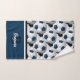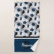 Monogram Dark Blue Black Soccer Ball Pattern Badhandtuch Set