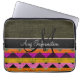Monogram Dark Green Zickzack Zigzag Burlap Jute Laptopschutzhülle