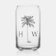 Diese inspirierte Dose Glas Trinkglas an der Küste verfügt über eine klassische Palmenpalme in schwarz mit einem Monogramm, das Sie mit Ihrer Auswahl an Initialen personalisieren können. Ideal für personalisierte Geschenktaschen.