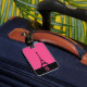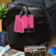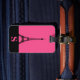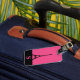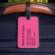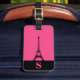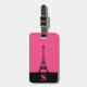 Gepäckanhänger mit schwarzem Eiffelturm und französischer Rose rosa Monogramm Initial/Name auf einem schwarz Streifen Monogramm Rahmen, Name und Adresse Informationen auf einem französisch-Rose rosa Hintergrund. Personalisieren Sie Ihre Monogramm-Initial(en)/Name, Name und Adressinformationen mithilfe der einfachen Vorlagen. Schriftart, Schriftart, Schriftart und französisch Rose Rosa Hintergrundfarbe sind anpassbar.