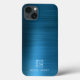 Monogram Elegant Blue Brushed Metal iPhone 13 Fall. Vollständig personalisieren Sie dieses elegante blaue Imitat gebürstete metallische Druck iPhone 13 Gehäuse mit Ihrem Monogramm und Namen.