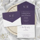 Diese schicke, minimalistische All-in-One-Hochzeitseinladung kann mit Ihren Monogramm-Initialen und Hochzeitstag-Informationen auf lila Hintergrund personalisiert werden. Die Einladung enthält eine perforierte RSVP-Karte, die für Sie individuell adressiert oder links als leere Karte für die Handschrift der Adressdaten Ihres Gastes verwendet werden kann. Entwickelt von Thisisnotme©