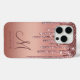 Ein einfaches, modernes Handy-Gehäuse mit Initial- und Name-Monogramm, auf einer eleganten Rose goldener Glitzer Tropfen Hintergrund, und ein modernes Skripttypografie Initial und Sans Serif Name. Wählen Sie Ihr Gerätemodell für dieses Design aus.