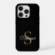 Monogram Elegant Script Name Black Gold iPhone 15 Pro Hülle