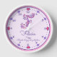 Monogram letter F hearts and flowers in pink and purple add your own name clock, currently reads Felicia Happy. Blessed with joy and good fortune or you can personalize with your own name and name meaning or message. Cute doodle drawing design of the letter F surrounded by clock numbers and hearts. Other matching items available for this letter and other letters. If you need help with placing your own name on this product please contact me. Unique design and ink drawing by Sarah Trett www.sarahtrett.com for www.mylittleeden.com on zazzle