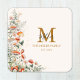 Die Blume unseres Monogram Forest Mushrooms Blumenbotanical Paper Untersetzer . Mit Aquarellbild von Pilz, Erdbeere, Blume auf weißem Hintergrund. Und bearbeitbarer Text, der personalisiert werden kann, um eindeutige Touch hinzuzufügen. Geeignet als Hochzeitsfeier oder als Party für die Hauswärmung.