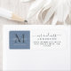 Das schicke, moderne und einfache Retourenschild für das frisch verheiratete Paar zeigt den Text Mr. und Mrs. in eleganter Schrift-Kalligraphie mit einem schwarzen Monogramm auf Vintagem blauen Hintergrund. Fügen Sie einfach Ihre Namen, Monogramm und Adresse hinzu. Exklusiv für Sie von Happy Dolphin Studio entworfen!