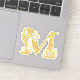 Eleganter goldener Glitzer Monogramm Buchstabe M. Dieser monogramm Glitzer Buchstaben M initial ist ein schöner goldener Ton von Glanz und Funkeln. Hübsche Blume Blätter zeigen besondere Anlass und Feiern. Moderne Optik-Aufkleber können auf Grußkarten, Hochzeitseinladungen, Dankeschön-Karten, Schreibwaren, Geschenkverpackungen und vieles mehr verwendet werden.