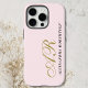 Stilvolle feminine trendige minimalistische minimalistische einfache iPhone-Gehäuse, personalisierbar mit Monogramm, Anfangsbuchstaben und Namen. Sauberer, gürlich hübscher pastellfarbener, pinkfarbener Hintergrund, elegantes goldfarbenes Kalligraphieskript, handgeschriebene Anfangsbuchstaben und klassische schwarze Typografie für den Namen. Ein wunderschöner, modisch-monochromer Handyschutz für Ihr persönliches oder berufliches Business-Handy oder als eine nachdenkliche und nützliche Geschenkidee für sie. Auch ist es sehr erschwinglich, ein Geschenk unter 50 Dollar für sie. Geeignet als Geburtstag, Muttertag, Abschluss, Jubiläum, Valentinstag, Weihnachtsgeschenk zum Beispiel Jede Mutter, Schwester, Freundin, Tochter, Großmutter würde sich freuen, solch ein besonderes iPhone Accessoire zu erhalten.