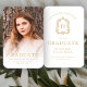 Dieser elegante Abschluss-Handventilator verfügt über ein Foto des Absolventen mit einem Goldüberlagerungssystem. Das Wort "Absolvent" erscheint in dekorativer Kontur Typografie. Geben Sie den Namen, die Schule und das Unterrichtsjahr des Absolventen unten ein. Auf der Rückseite steht das Wort "Gratulationen" über einem eleganten Vintagen Wappen, das ein goldenes Monogramm auf weißem Hintergrund mit dem Namen, der Schule und dem Unterrichtsjahr umgibt.