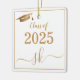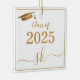 Feiern Sie mit diesem trendigen Abschluss-Ornament die Leistungen des Absolventen stilvoll. Design-Features "Klasse von 2025" in goldenem Schriftart mit Graduierungskappe auf einem sauberen weißen Hintergrund. Personalisieren Sie dieses Produkt, indem Sie das Jahr des Abschlusses und den Namen des ersten Monogramms hinzufügen. Einfach anzupassen. Herzlichen Glückwunsch!