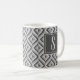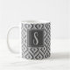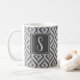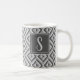 Trinken Sie Ihren Drink aus dieser Monogram grauen Drei-Tone-Diamond-Muster-Tasse. Es zeichnet sich durch ein geometrisches Rautenmuster in drei Grautönen aus, wobei ein hellgraues Initial an einem dunkelgrauen Quadrat angebracht ist. Eine tolle Geschenkidee für einen stilvollen Kaffeetrinker.