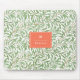 Schönes Grünmuster von William Morris. Grün und braun, weißer Hintergrund, orangefarbener Schild mit Monogramm und individuelle Name. Elegant und raffiniert.