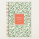 Schönes Grünmuster von William Morris. Grün und braun, weißer Hintergrund, orangefarbener Schild mit Monogramm und individuelle Name. Elegant und raffiniert.