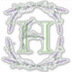 Ein romantisches und elegantes Design mit mit Monogramm Buchstaben gerahmt von Eukalyptus und Lavendel in Aquarellfarbe.