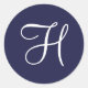 Monogram H, weiß auf Navy Blue, Classic Round Stic Runder Aufkleber