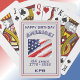 "Happy Birthday America!" with dark blue decorative lettering, USA rustic flag image, 250 years, and simple monogram initials on a platinum color background are featured on this deck of commemorative keepsake playing cards. Easily change initials using the Template provided. Use the Design Tool to edit font color, size, style-- and more. Dimensions: 2.5" x 3.5"; poker size playing cards. Easy to shuffle, smooth card stock. At this price, ideal budget marketing product. Ample room for business name. Excellent quality and printing. HIGH ratings.