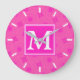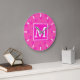 Monogram hot pink circles pattern große wanduhr