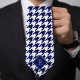 Dress to impress with this elegant monogrammed tie for men. It's white and dark blue wood houndstooth pattern offers a sleek and professional look and feel added to your business attire. Personalize the monogram with your initial for a unique gift for dads, boyfriends, brothers or bosses.