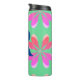 Monogram, initial Hot Pink Lime Green Retro Floral Thermosbecher