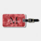 Benutzerdefinierte Gepäckanhänger in rot. Abstrakte Kunst im Hintergrund. Bearbeiten Sie den Initial und den Namen, um ihn personalisiert zu machen. Geschenkidee.