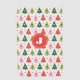 Ein Retro-Stil Mitte des Jahrhunderts Weihnachtsbaummuster mit Dreiecken, Sternen, Schneeflocken und diagonalen Streifen. Die Farben sind rot, grün, rosa und weiß. Dieses Design kann mit einem ersten (mit Monogramm) personalisiert werden.