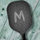 Monogram Initial on Black Leather Grains Print Pickleball Schläger