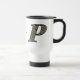 Elegant monogram letter P filled with delicate white hydrangea flowers personalized travel coffee or tea mug. Click on Customize to add text. Great gift idea. This image is available on many products in my gallery.