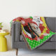 Ein Schneemann in einem Top-Hut, ein Schneemann in einem roten Winterhass und gestreiftem Schal, ein Hintergrund weißer Polka Punkte auf rot, gelb und grün mit einem weißen Stern, den Sie leicht mit Ihrem Monogramm-Initial anpassen können! Dieses hübsche Weihnachtsschneedecke wird Jahr für Jahr ein wertvolles Thema sein!